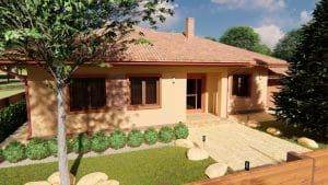 A Maroslelle 168 m²-es családi ház típustervünk nettó 140 m2 lakóterületet kínál jövőbeni tulajdonosainak, ami 4 szobát és 2 fürdőszobát foglal magába.
